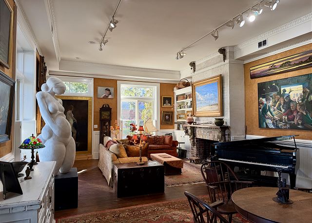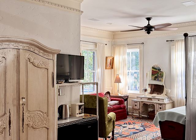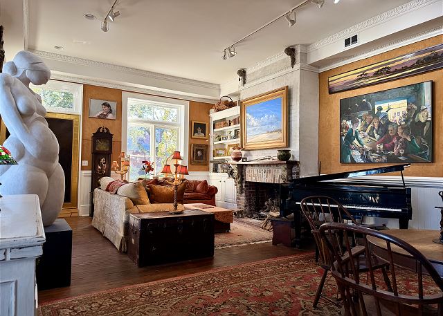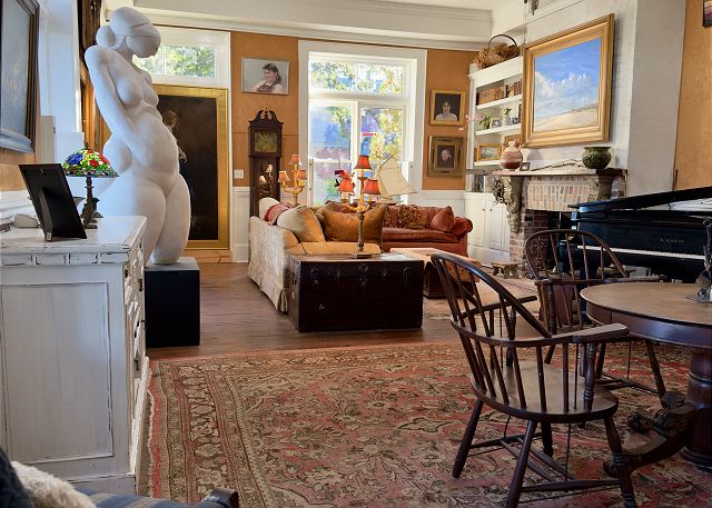 king, shower, sleep sofa /futon, toilet, tub, botanical garden, churches, cinemas, duty free shops, festivals, library, live theater, marina, museums, playground, restaurants, synagogues, Dining, Smart TV, Air Conditioning, Clothes Dryer, Fireplace, Hair Dryer, Heating, Internet, Linens Provided, Living Room, Towels Provided, Washing Machine, Shampoo & conditioner, Desk, Wifi, Coffee Maker, Dishes & Utensils, Dishwasher, Kitchen, Microwave, Oven, Refrigerator, Stove, Toaster, scenic drives, sight seeing, Downtown, Lawn / Garden, bedroom, non smoking only, pets considered, Long-term Renters Welcome, Minimum Age Limit for Renters, flexible, not necessary, recommended, Dining Area, Historic, Tourist Attractions, Outdoor lighting, Deadbolt lock on entryway, Smoke detectors, Carbon monoxide detector, Enhanced cleaning practices, Clean with disinfectant, No-contact check-in and check-out, High touch surfaces cleaned with disinfectant, Towels and bedding washed in water that's at least 60sC/140sF